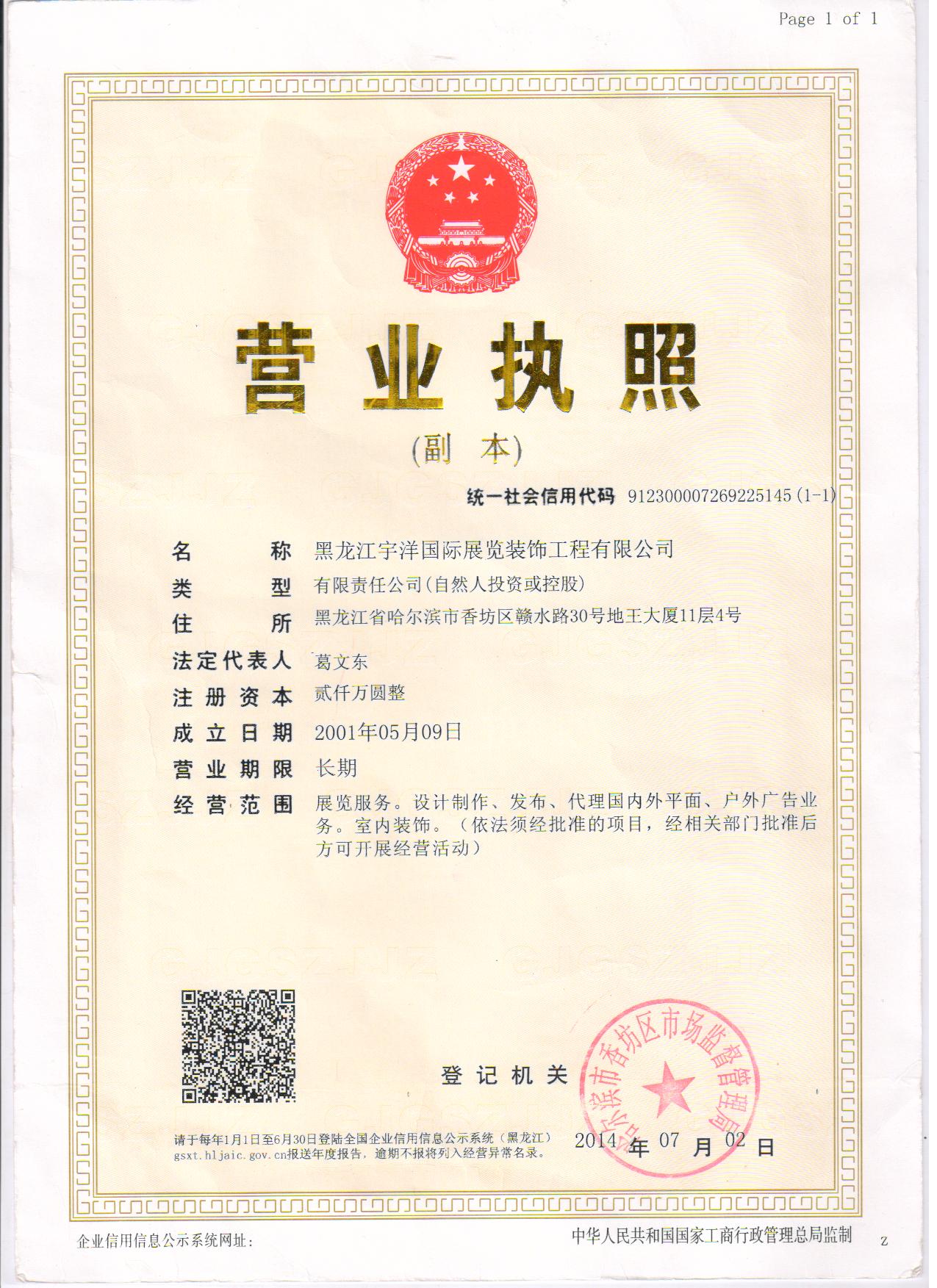 黑龙江宇洋国际展览装饰工程有限公司,成立于2001年,是一家集展览服务、设计制作、发布、代理国内外平面、户外广告业务、室内装饰为主体的专业性、综合性的国际展览工程公司。公司发展从小到大、由弱到强,管理人员30人占公司员工总数的80%以上。